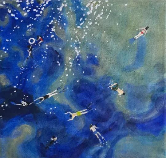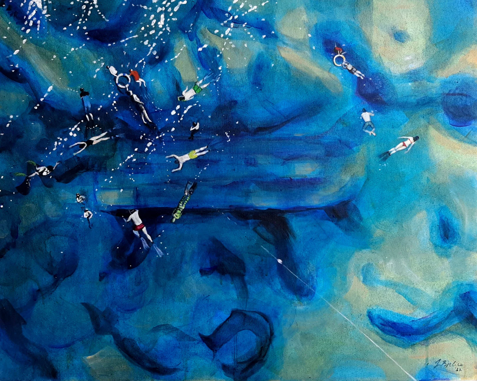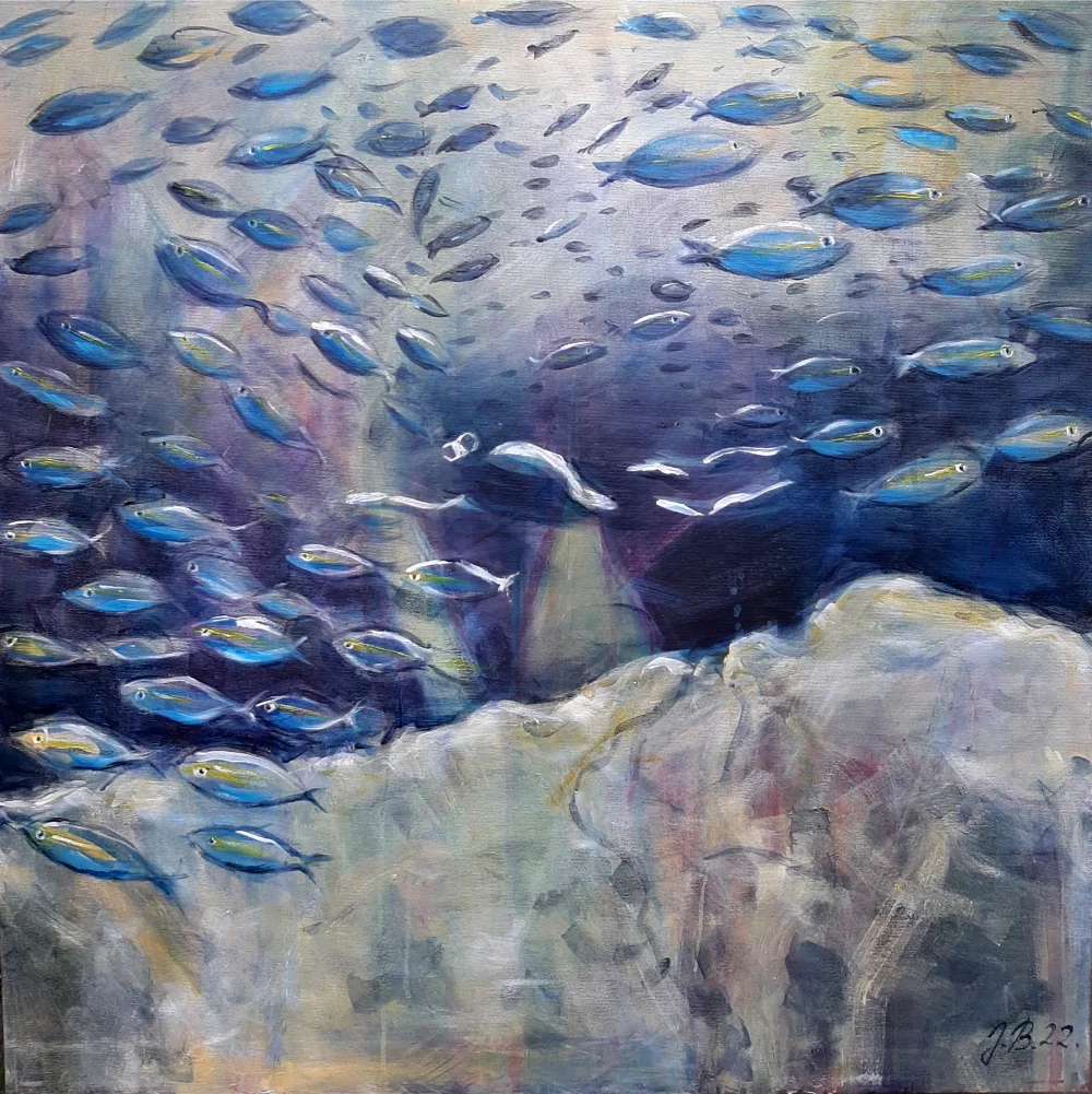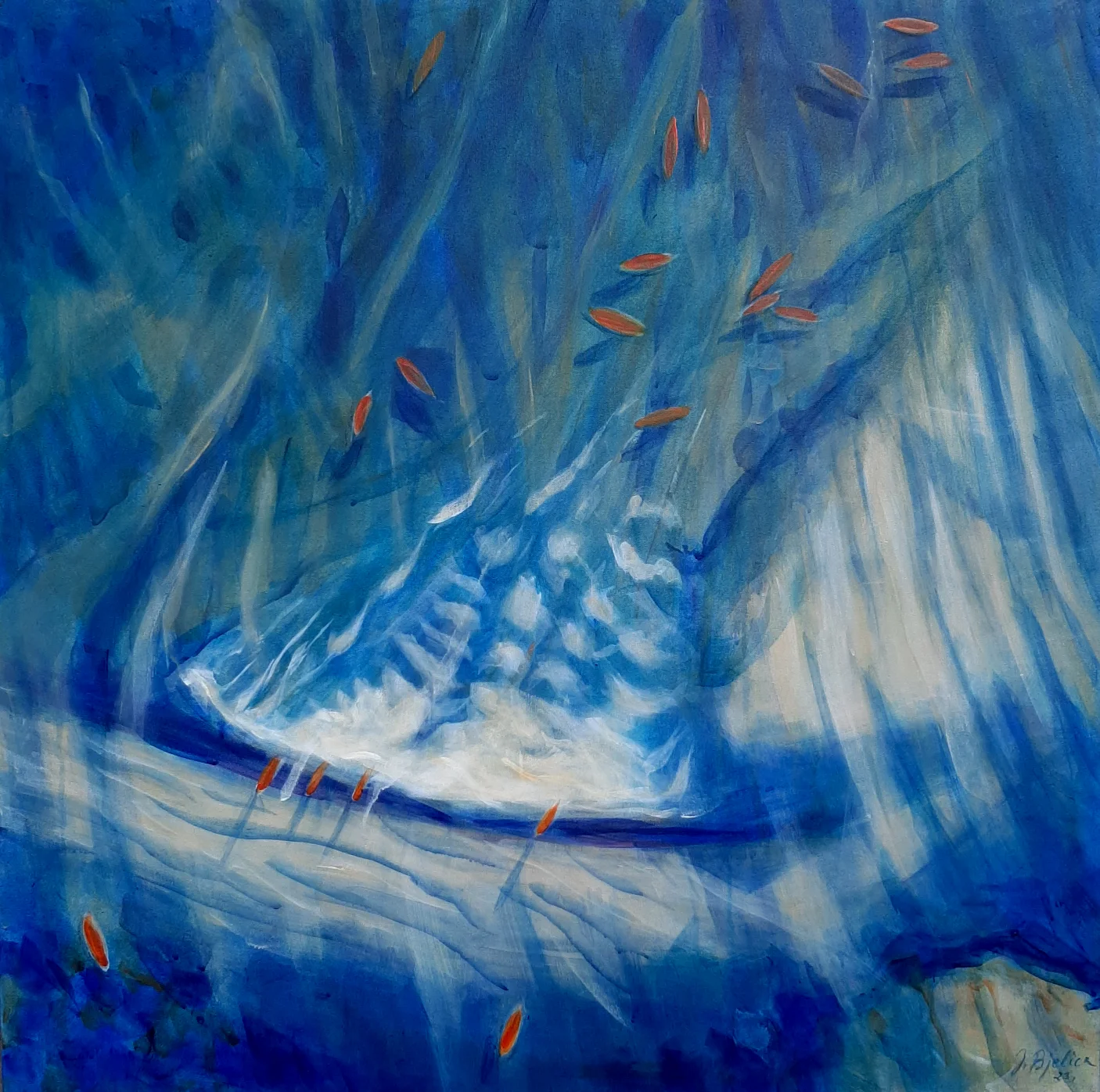 Raspravljati o simbolici kolorita primenjenog na ovim delima (plave i oker površine, snažna crna kontura, akcenti crvenog) skoro da je nepotrebno. Sve odiše kristalnom jasnošću. Teško je zamisliti da postoji, u ljudskom rodu, neko ko i bez uvodnih reči ne bi i sam shvatio sve poruke mlade autorke. Večna metafizičnost teme pojačana potpunom ličnom urbanizacijom kao i svešću o opštem otuđenju čoveka od sebe samog , te koloritna univerzalnost, omogućili su Jeleni da savremenim i razumljivim likovnim jezikom iskaže put kojim nije loše proći ukoliko se za cilj ima konačno umetničko sazrevanje.