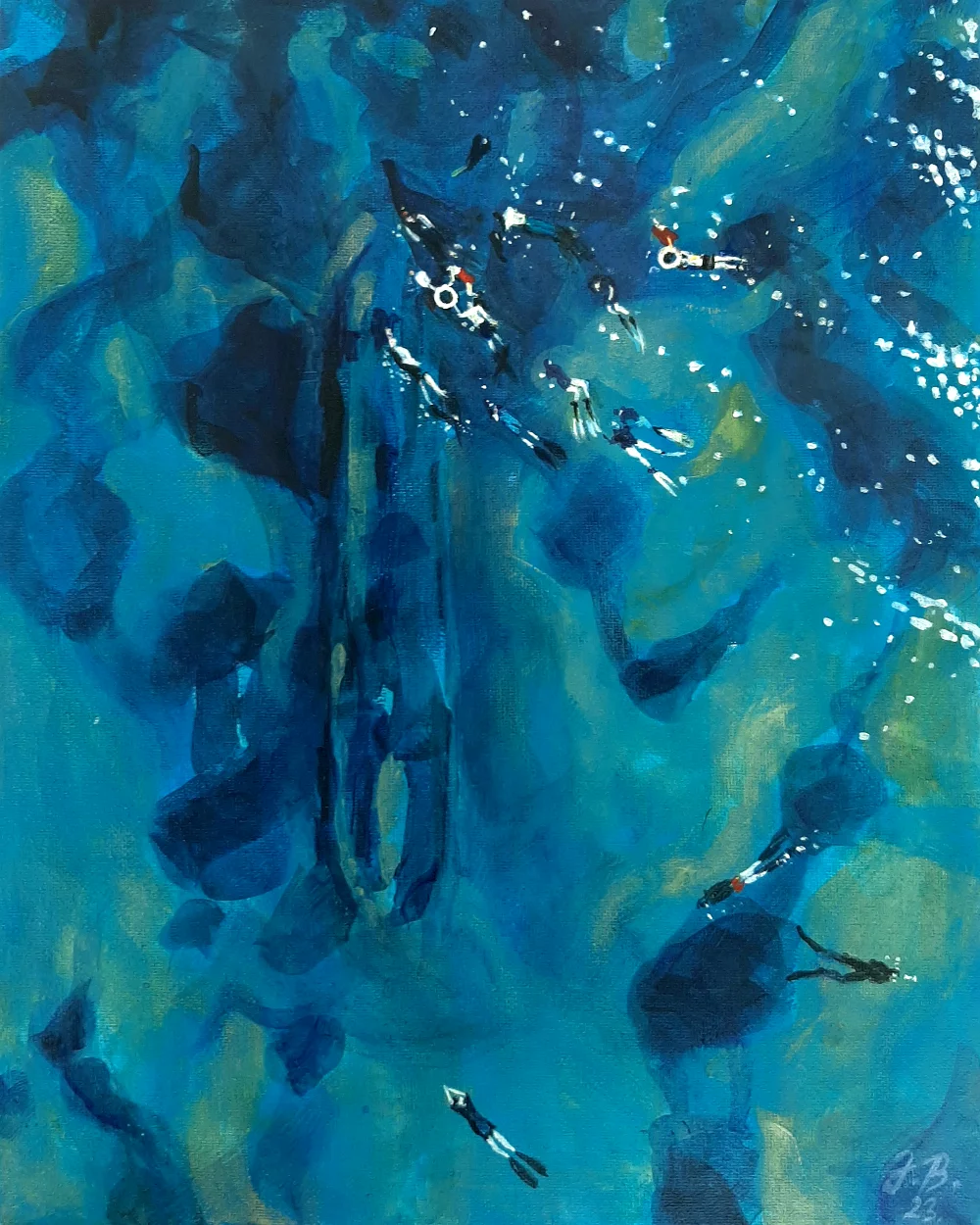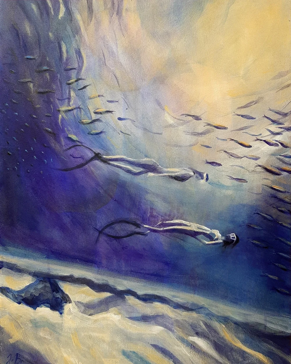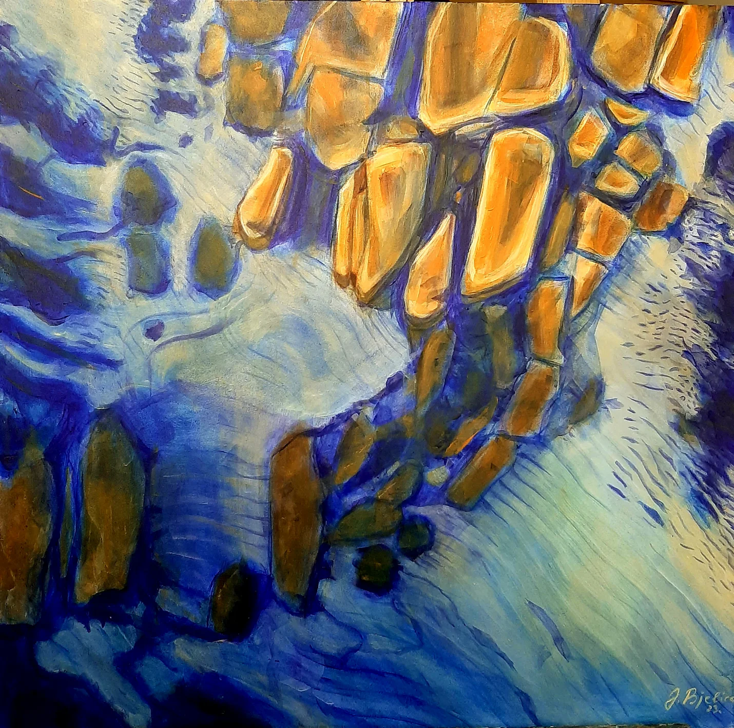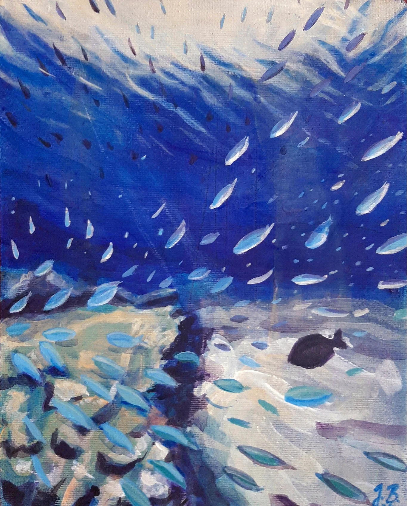 Raspravljati o simbolici kolorita primenjenog na ovim delima (plave i oker površine, snažna crna kontura, akcenti crvenog) skoro da je nepotrebno. Sve odiše kristalnom jasnošću. Teško je zamisliti da postoji, u ljudskom rodu, neko ko i bez uvodnih reči ne bi i sam shvatio sve poruke mlade autorke. Večna metafizičnost teme pojačana potpunom ličnom urbanizacijom kao i svešću o opštem otuđenju čoveka od sebe samog , te koloritna univerzalnost, omogućili su Jeleni da savremenim i razumljivim likovnim jezikom iskaže put kojim nije loše proći ukoliko se za cilj ima konačno umetničko sazrevanje.
