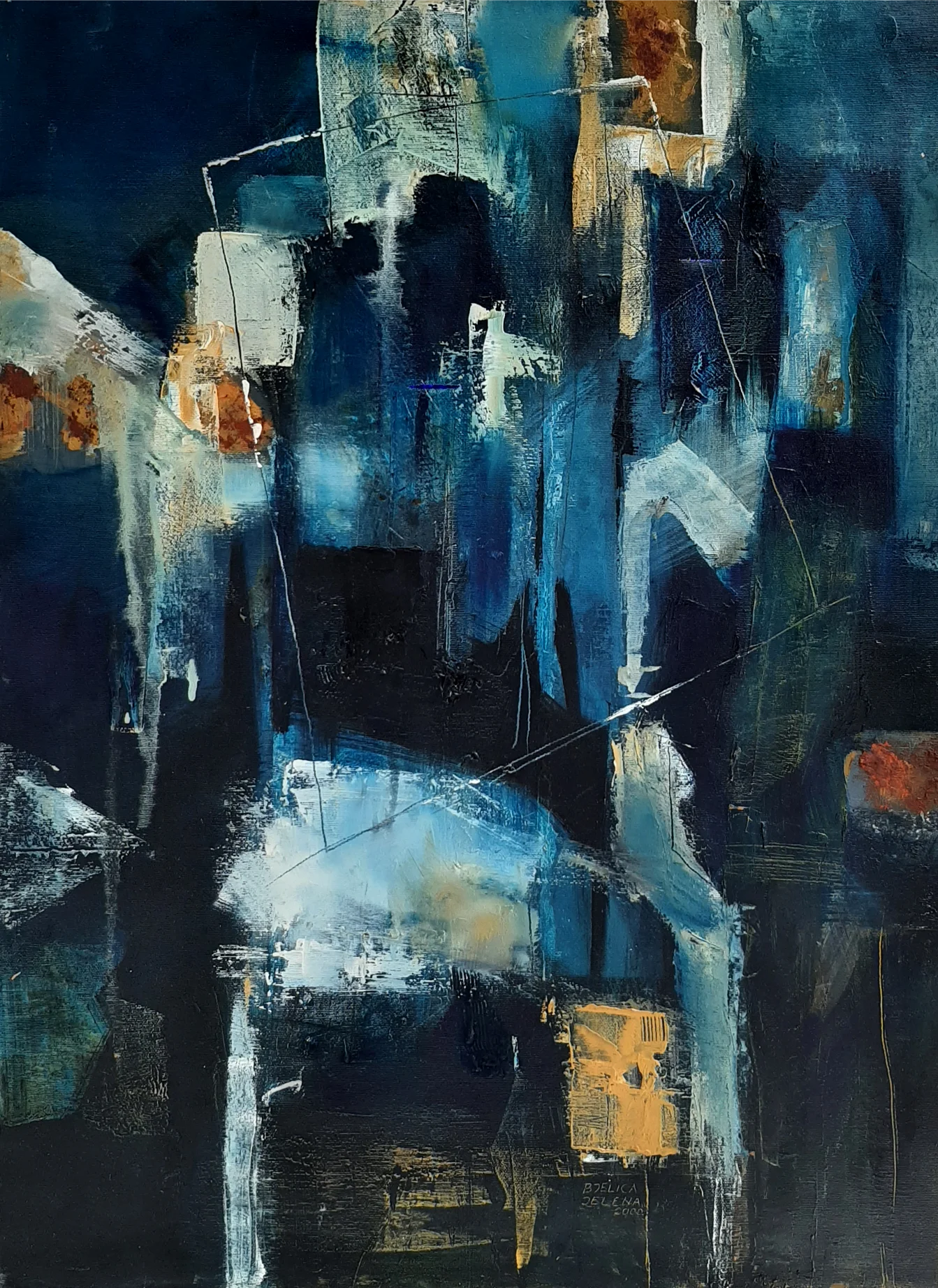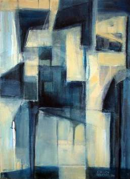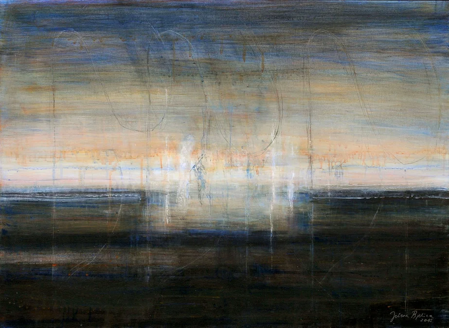 Apstraktne kompozicije predstavljene na ovoj izložbi nisu bezsemeni plod ekskluzivne intelektualne analize naučenog. Svest o postmodernom pravu da umetnik nađeno ili zatečeno, uz intervenciju, proglasi umetničkim delom ili činom nije bez odgovornosti. U svemu tome nazire se jedan ozbiljan duhovni i mentalni proces artikulisan ne samo kroz izbor elemenata koji postoji i kao graničnik i kao posrednik. On u Jeleninom angažmanu odvaja stvarnosno od izmaštanog. Naznačuje izbor od mogućih oblika delovanja u daljem stvaralačkom procesu.